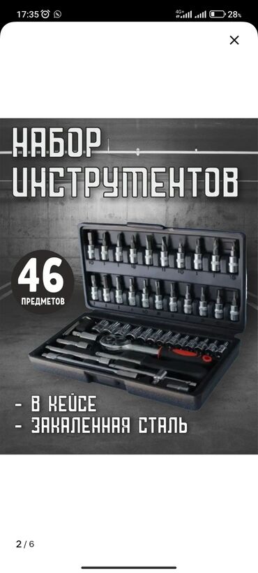 Набор инструментов в пластиковом кейсе, 46 предметов.