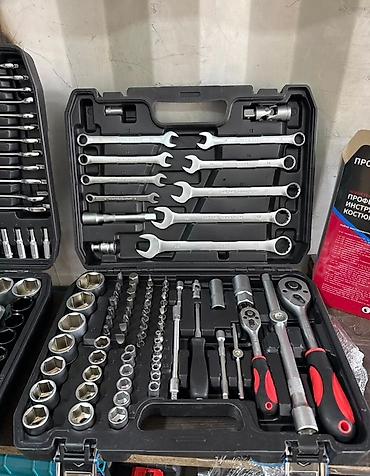 Набор инструментов в черном пластиковом кейсе, предназначенный для выполнения различных ремонтных и монтажных работ Комплект включает в себя рожковые ключи, торцевые головки разных размеров, трещотки, удлинители, отвертки и биты. Инструменты изготовлены из хромованадиевой стали, что обеспечивает их долговечность и устойчивость к нагрузкам. Кейс имеет удобные защелки и ручку для переноски, что делает набор мобильным и удобным для хранения. Подходит для использования в гараже мастерской или на выезде.