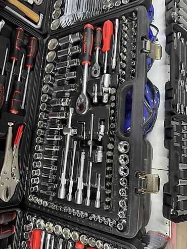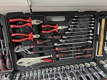 Комплексный комплект для авто-, слесарных и домашних работ. Все элементы уложены в формованные посадочные места, фиксация металлическими замками.
