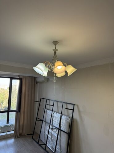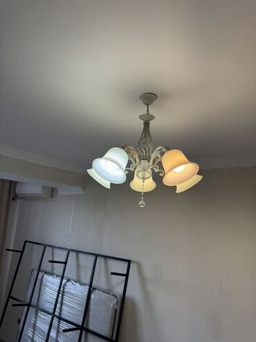 - Материал: металл в светлом тоне (айвори/беж), стеклянные плафоны в форме колокольчиков.