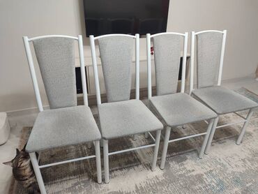 Комплект обедных стульев с металлическим каркасом - Каркас: сталь с порошковым белым покрытием — устойчива к царапинам и коррозии, легко протирается. - Сиденье и спинка: мягкая обивка серого цвета...