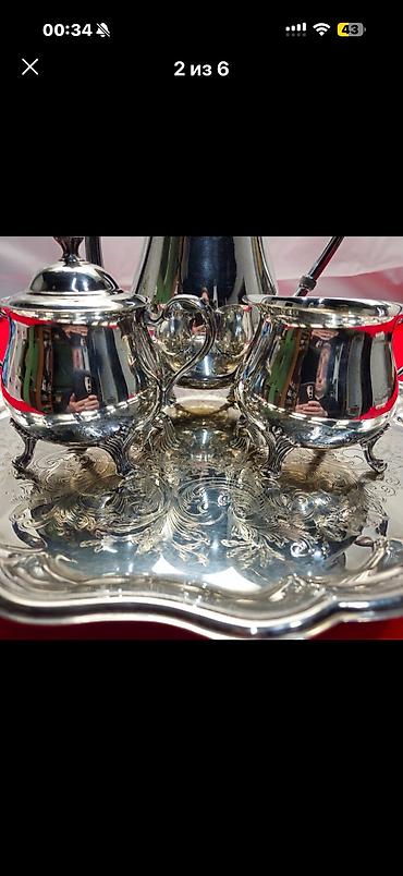 Продаю новый столово-чайный сервиз на 6 персон. Произведен в Иране на престижном заводе фарфоровых изделий. В упаковке. На белом форфоре серебряные веточки с цветком.