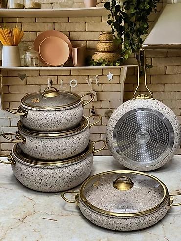 rазанки 28 см-5 л,24 см- 3.6 л, 20 см-2.2 л,казанок-сотейник 38 см-2.5 л,сковорода на 26 см без крышки