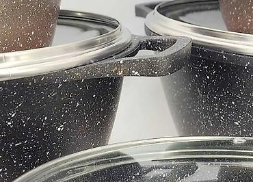 Набор казанов с антипригарным покрытием со стеклянной крышкой хорошо подходит для варки, тушения и томления, так как имеет отличные теплораспределительные и теплоаккумулирующие свойства, и блюда в ней получаются сочными и ароматными. Цельнолитые ручки позволяют использовать кастрюлю в духовом шкафу. Функциональность посуды увеличивает стеклянная крышка из термостойкого стекла, благодаря которой можно наблюдать за приготовлением пищи и не снимать крышку каждый раз, теряя при этом изрядное количество тепла. кастрюля с антипригарным покрытием со стеклянной крышкой хорошо подходит для варки, тушения и томления, так как имеет отличные теплораспределительные и теплоаккумулирующие свойства, и блюда в ней получаются сочными и ароматными. Цельнолитые ручки позволяют использовать кастрюлю в духовом шкафу. Функциональность посуды увеличивает стеклянная крышка из термостойкого стекла, благодаря которой можно наблюдать за приготовлением пищи и не снимать крышку каждый раз, теряя при этом изрядное количество тепла. Кастрюля с толстым дном с внешней стороны имеет термостойкое декоративное покрытие.