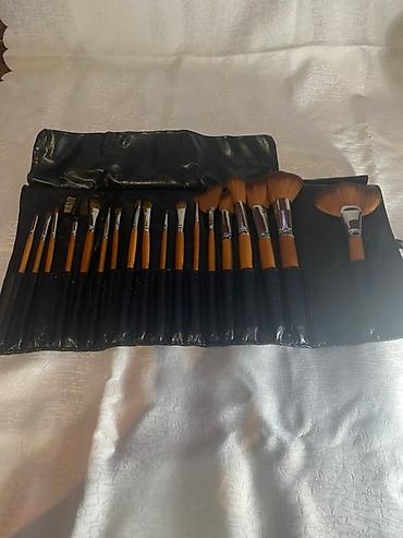 Подходит для полноценного макияжа лица, глаз и бровей, удобен для хранения и переноски. Количество кистей — около 18–20 в комплекте.