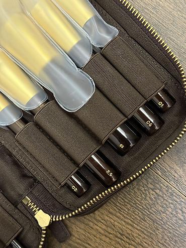 - Футляр-органайзер на молнии с отделениями под каждую кисть — удобно хранить и брать с собой.