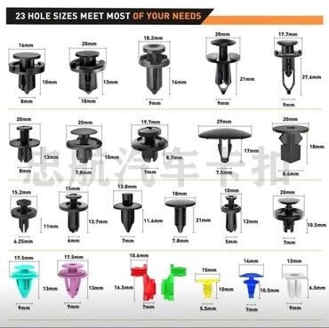 Клипсы ( пистоны ) Универсальный крепёжный зажим-клипсы для крепления панелей дверей и обшивки автомобиля в количестве 620+30 штук Цена 1200 сом БЕСПЛАТНАЯ ДОСТАВКА