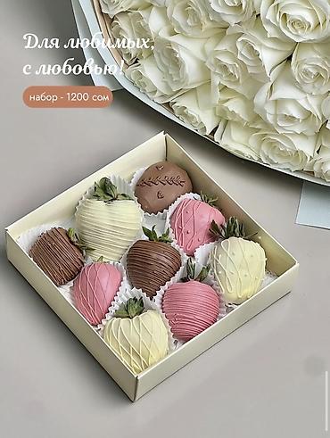 Клубника в бельгийском шоколаде Сочные крупные ягоды, покрытые настоящим бельгийским шоколадом. Возможны разные декоры: шоколадная глазурь с полосками, дроблённые орешки и хрустящая посыпка. Кажда...