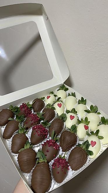 Идея для подарка или сладкого стола: эстетичная подача, разный декор в одном боксе, сочная ягода в тонком шоколадном покрытии.