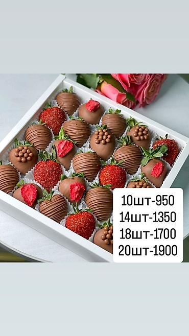 - Свежая крупная клубника, покрытая молочным, белым и клубничным (розовым) шоколадом.