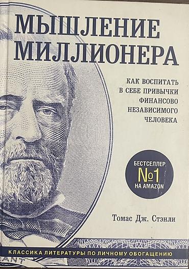 3) «Мышление миллионера: как воспитать в себе привычки финансово независимого человека» — Томас Дж. Стэнли. Классика литературы по личному обогащению, на русском языке. На обложке отмечено «Бестселлер №1 на Amazon». Твердая обложка, крупный портрет на фасаде.
