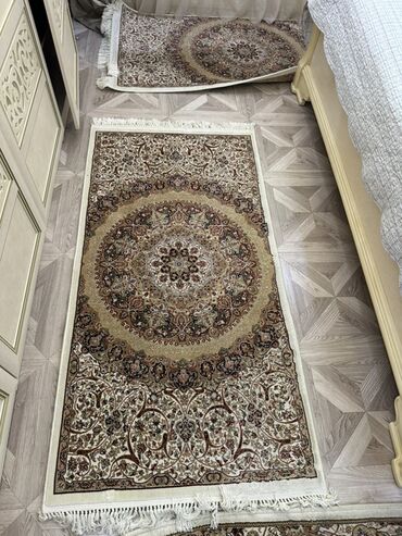 - Комплект из трех ковров: один овальный крупный и два прямоугольных дорожки.