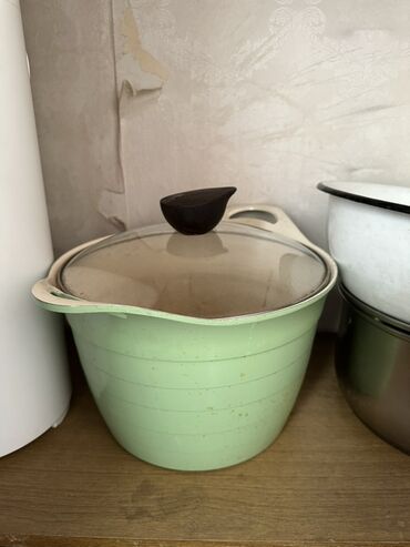 - Кастрюля/чаша мятного цвета с крышкой из термостойкого стекла и удобной ручкой‑держателем на крышке. Широкие носики с двух сторон для аккуратного слива.