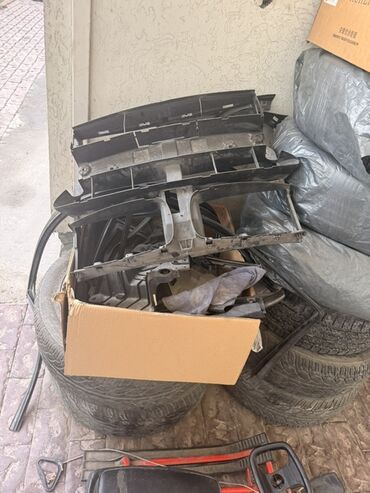 - Передний бампер в сборе (основа, усилители/крепления, декоративные решётки — часть в коробке)