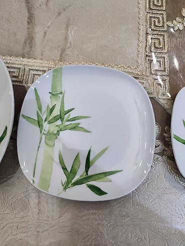 Набор квадратных тарелок с рисунком бамбука 4*4 =16 штук