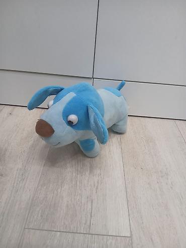 - Плюшевый песик голубых оттенков с длинными ушами, лежачая форма.