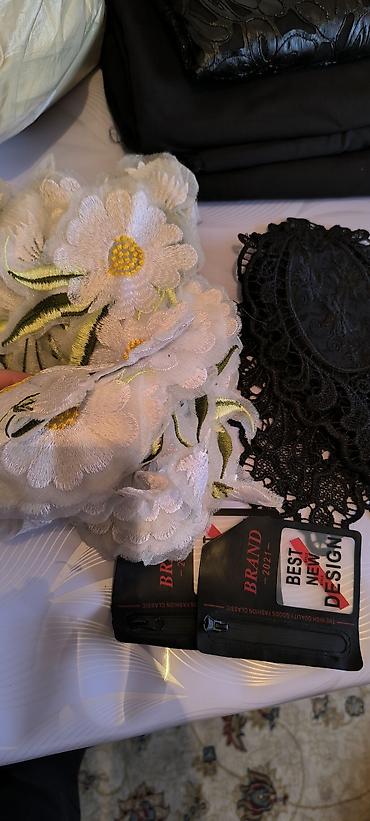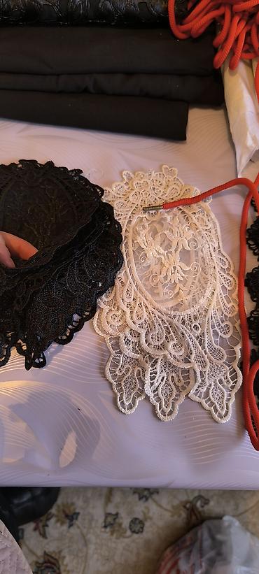 - Кружевные аппликации и вставки: черные ажурные элементы, белые/молочные с узорами, объемные цветы.
