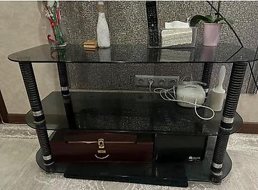 - Три полки из тёмного закалённого стекла.
