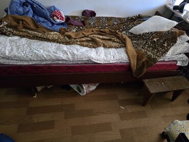 - Кровать односпальная с деревянным каркасом и матрасом. Низкое основание, место для хранения под кроватью.