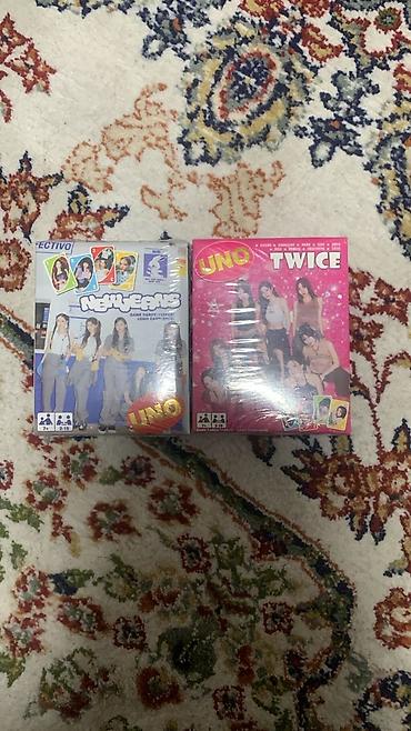 - Игровые колоды UNO с оформлением K‑pop групп: NewJeans и TWICE. На коробках указано: 2–10 игроков, 7+.