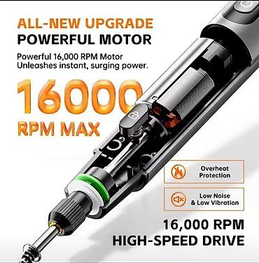 - Мотор до 16000 об/мин, низкий шум и вибрация, защита от перегрева.
