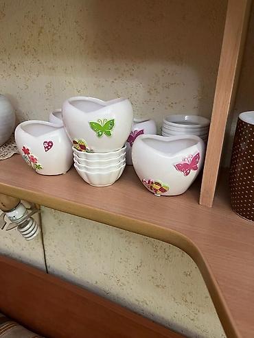 - В комплекте также идут небольшие белые розеточки/чашки волнистого и ребристого дизайна (подставки/мисочки)