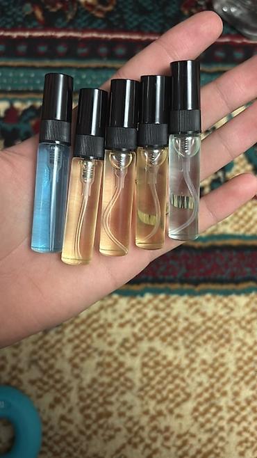 - Формат: компактные флаконы-распылители объёмом около 5 мл каждый (прозрачное стекло/пластик, чёрные спреи).