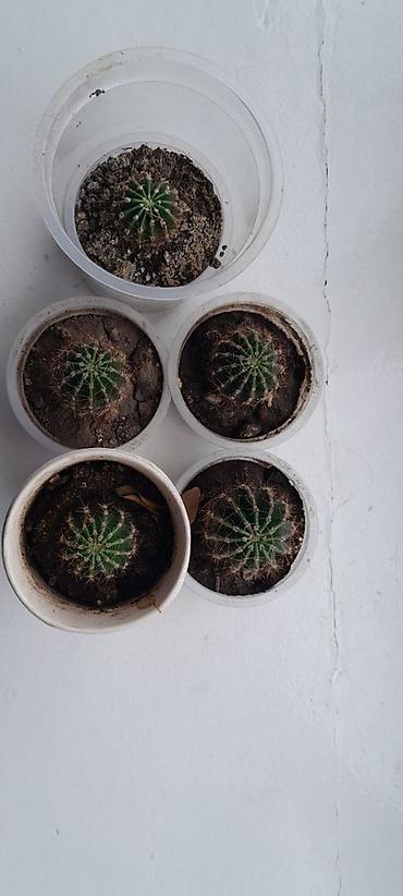 Набор небольших кактусов (примерно 5 шт.) в индивидуальных пластиковых стаканчиках.