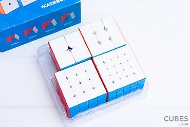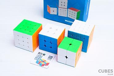 В набор входят: Кубики Рубики от фирмы MoYu со сложностью от 2на2 до 5на5.