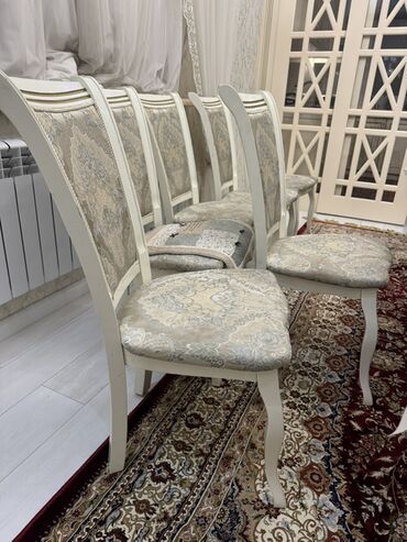 - Обивка: жаккардовая ткань с изящным светло-бежево-серебристым орнаментом.
