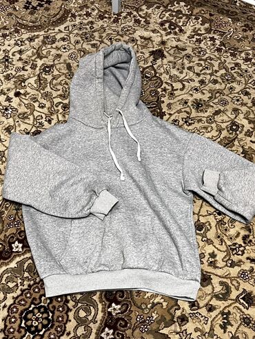 Серый теплый спортивный костюм из плотного трикотажа с начёсом (внутри мягкий флис). Комплект из худи и джоггеров. Рост 150см. Худи: - Капюшон на толстых контрастных шнурах с металлическими наконеч...
