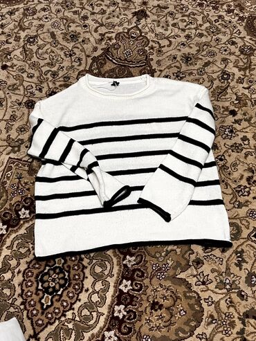 Набор детской одежды для мальчика: 1) Тёплый вязаный свитер в широкую чёрно‑белую полоску - Классический круглый ворот - Длинные рукава, плотная резинка на манжетах и по низу - Материал: трикотаж ...