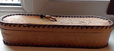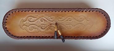 - Длинный кожаный чехол с тиснёным национальным орнаментом и ремешком-застёжкой.