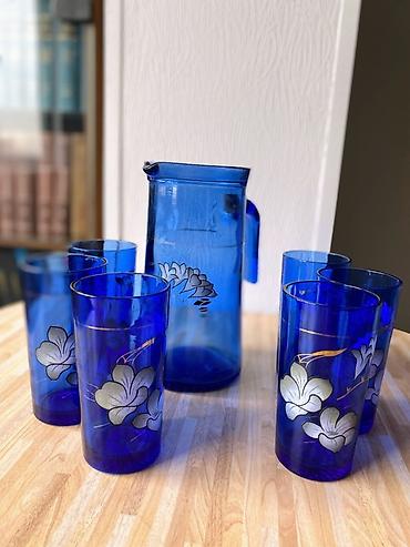 1) Синий стеклянный набор для напитков: