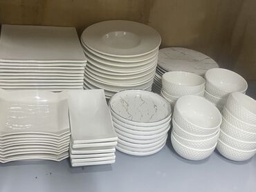 Аренда посуды до 500 персон Что входит Тарелки на 2 ое Постановочные тарелки Пиала Кесе Салатницы Этажерки Для конфет Для выпечки Бокал Рюмки Приборы Пловница Цветы Салфетки с кольцами