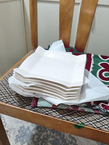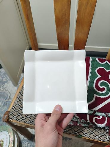 - 1 квадратная тарелка белого цвета с приподнятыми краями — для десертов, суши, подачи закусок. Примерный размер 20–22 см.