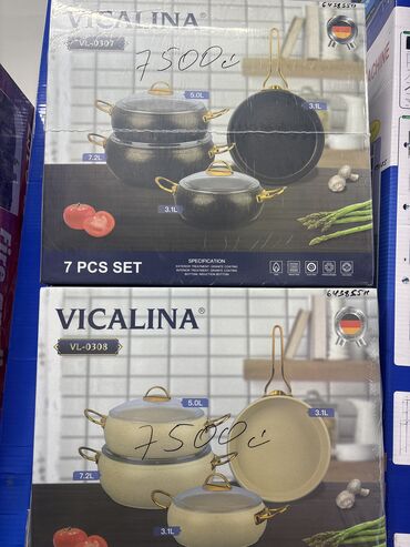 Набор посуды VICALINA (серии VL‑0307/VL‑0308) Цена: 6200 сом Состав набора — 4 предмета: - Казан 7.2 л с крышкой - Казан 5.0 л с крышкой - Казан 3.1 л с крышкой - Сковорода 3.1 л Ключевые особен...