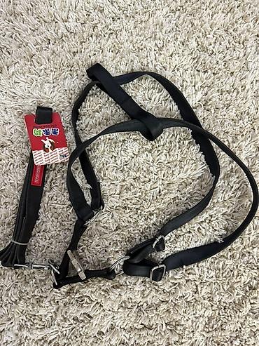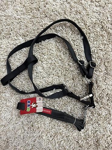 - Черная шлейка-уздечка с двумя регулируемыми ремнями и металлической фурнитурой: пряжки, карабин, кольца и фиксатор. Широкие нейлоновые ленты, мягкие ручки для удержания.