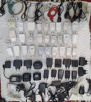 - Зарядные устройства для розетки 220 В: множество блоков питания различных брендов и форм‑факторов, одно- и двухпортовые, преимущественно USB‑адаптеры; есть сетевые кабели USB‑A—micro‑USB/USB‑A—USB‑mini, а также несколько сетевых шнуров с несъемной вилкой.