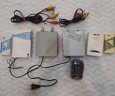- Несколько компактных блоков/модулей в металлическом корпусе с коаксиальными разъемами (под антенну/ТВ‑раскладчик или усилитель сигнала).