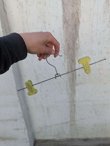 Вешалки для одежды: 1) Металлическая вешалка с зажимами для брюк и юбок - Материал: металл - Два прочных зажима с регулировкой по ширине - Подходит для брюк, юбок, шорт - Цена: 10 сом за 1...