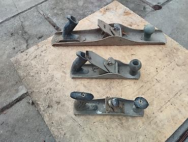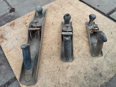 - 3 ручных рубанка разной длины и ширины колодки, с регулирующими узлами и рукоятками.