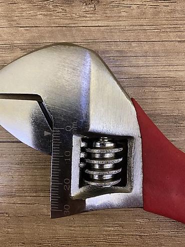 - Разводной ключ 10" (250 мм). Шкала на губке для быстрой установки зазора (до ~30 мм по рискам)