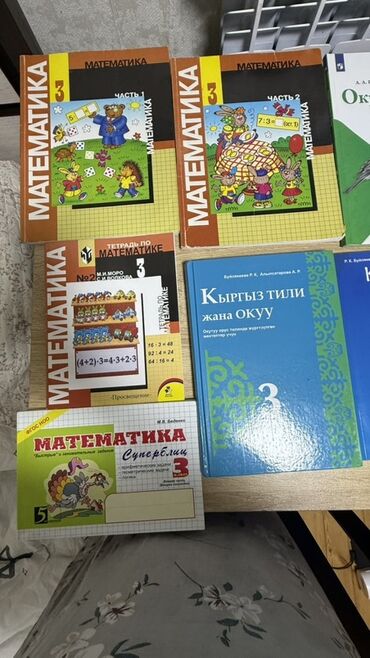 Б/уПродаю набор школьных учебников для 3 класса- математика, окружающий мир, русский, английский и кыргызский языки. В комплекте представлены как учебники, так и рабочие тетради по математике, а также по окружающему миру.