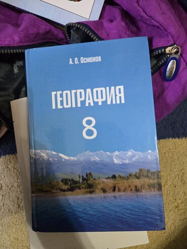 - География, 8 класс. Автор: А. О. Осмонов. Твёрдая обложка, оформление с горным пейзажем и водоёмом.