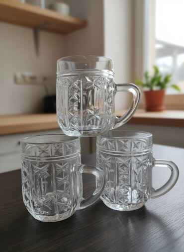 - Преимущества: хорошо лежат в руке, устойчивы на столе, рельеф помогает не скользить; классический винтажный дизайн, сочетается с сервировкой в ретро-стиле.