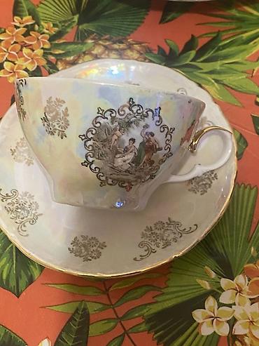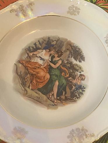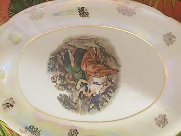 Фарфоровый столовый сервиз KAHLA, GDR (ГДР) - Производитель: Kahla, маркировка “KAHLA – MADE IN GDR”. - Материал: тонкий фарфор с перламутровой глазурью. - Декор: многоцветные классические сцены в...