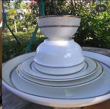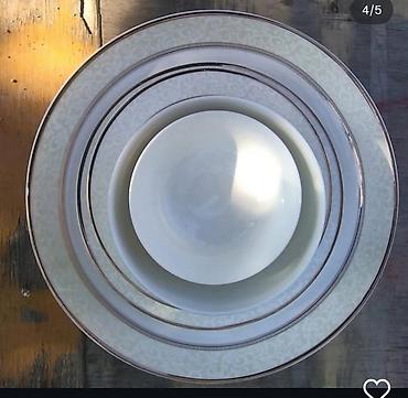 Набор столовой посуды из тонкого фарфора с изящным бордюром и