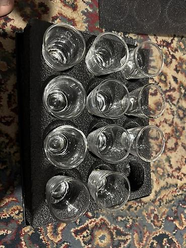 - Комплект из 12 стеклянных стопок в индивидуальных ячейках.