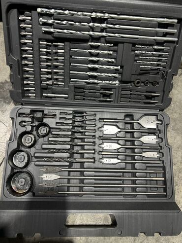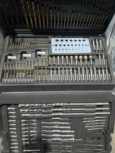 - Сверла по металлу, дереву и masonry (камень/бетон) — широкий диапазон диаметров, включая тонкие и крупные.
